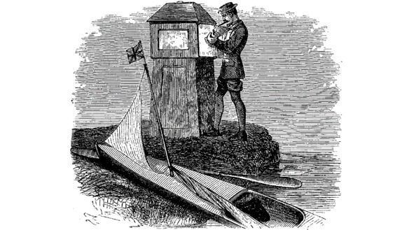 На озерах и внутренних лагунах иногда стоят маяки, только очень маленькие. Ящик со стеклянными стенками на подставке, до верха которой можно дотянуться, стоит на выступающем камне. Вечером приходит деревенский фонарщик и зажигает лампу, а днем команда «Роб-Роя» выходит на берег и разминает ноги у башенки.