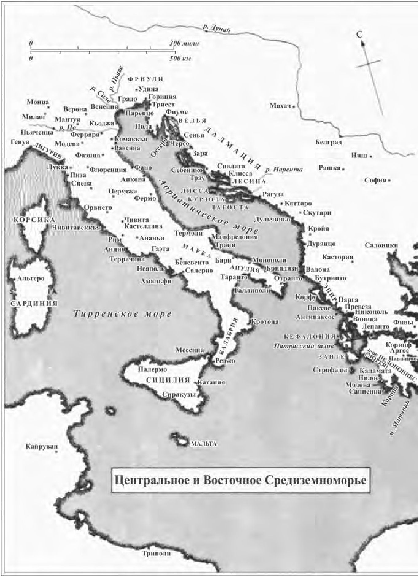 Даже сделав скидку на естественный для Кассиодора цветистый стиль, его описание безошибочно: хотя эти странные «береговые жители» могут быть полезны королю остготов, обращаться с ними следует осторожно. И настоящая ценность его письма состоит в описании – самом раннем из дошедших до нас – жизни в лагуне5. Из письма ясно также, что два столпа, на которых будет основываться величие Венеции – торговля и мореплавание, – были известны уже и тогда. Торговля у этих поселенцев была в крови. Соль, которую они добывали на мелководье, была не только ценным товаром, ее можно было использовать для засаливания рыбы. Почти с такой же легкостью они ловили ее в море, а на дичь охотились в окрестных болотах. К середине VI века плоскодонная торговая венецианская баржа стала обычным явлением на реках Северной и Центральной Италии.
