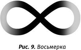 Притягивая энергию высоких вибраций к телу, фигура восьмерки объединяет ее с энергией земли, вытягиваемой из ног, чтобы создать равновесие и заземлить вибрации. Это формирует центральную энергетическую цельность, которая позволяет преодолевать энергетические изменения. Поместите объединяющий камень чуть ниже пупка или в центре схемы (см. рис. 9). Положите один кристалл с высокой вибрацией на уровне левого плеча или посередине верхней части тела (слева), другой камень на макушке головы или наверху схемы, а третий – посередине верхней части тела (справа). Поместите один заземляющий камень на уровне левого колена или посередине нижней части тела, затем другой – под ногами или у основания схемы, а третий – на уровне правого колена. Не забудьте замкнуть контур с помощью объединяющего кристалла, двигаясь в обратном направлении – от последнего к первому размещенному камню.