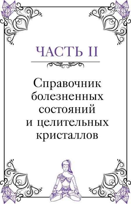Очень простая, но эффективная схема заключается в том, чтобы поместить очищенные и активированные кристаллы над каждой из ваших чакр. С помощью гадания или интуиции вы можете определить, какие кристаллы подходят и какие из малых чакр необходимо задействовать (см. рис. 1 «Кристаллы и чакры»). Начните снизу и положите один из камней под ногами, затем медленно ложитесь и поместите другой кристалл между ног, раскладывайте камни на чакрах, двигаясь вверх по телу. Наконец, положите один или несколько кристаллов над головой. Полежите неподвижно около пятнадцати минут, а потом соберите кристаллы в обратном порядке – начиная с одного (или нескольких) над головой. Когда вы дойдете до кристалла под ногами, задержитесь на нем руками, чтобы заземлить энергию, прежде чем встать.