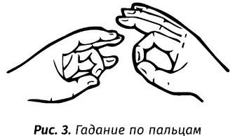 Чтобы провести сеанс гадания по пальцам, сожмите большой и указательный пальцы правой руки вместе – образуется петля. Поместите эту петлю между большим и безымянным пальцами левой руки, которые затем соедините так, чтобы получилась «цепочка» (см. рис. 3). После этого задайте ваш вопрос четко и ясно, без двусмысленности. Вы можете произнести его вслух, шепотом или про себя. Затем медленно, но твердо потяните пальцы. Если цепь сразу разорвется – ответ «нет», сохранится – «да».