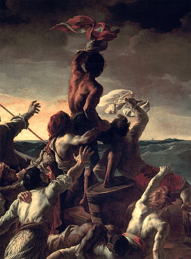Все начинается с верности правде жизни; но после первых же шагов верность искусству становится более важным законом. Изображенное никогда не происходило в действительности; цифры не совпадают; каннибализм сведен к литературной ссылке; группа «отца и сына» имеет самое шаткое документальное обоснование, группа около бочки – вовсе никакого. Плот был приведен в порядок, словно перед официальным визитом какого-нибудь чересчур впечатлительного монарха: куски человеческой плоти убраны с глаз долой, прически у всех волосок к волоску, как новенькая кисть художника.