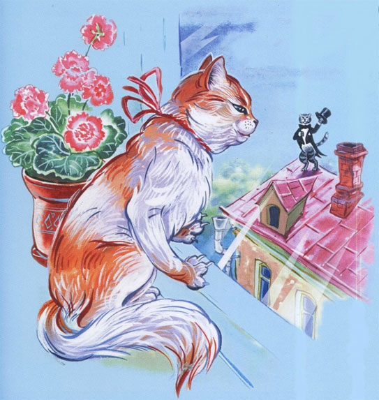 “What a nasty one, this Peter! Yesterday he wanted to put me in a pot, and when I scratched him, he ran to complain to Mama. He’s not only a meanie, but also a tattletale,” the cat Muffin complained one day.