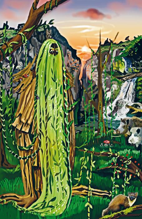 Такой образ жизни сделал их похожими на деревья. Птицы стали вить гнезда в их волосах, во мху, которым они укрывались, поселились насекомые и жучки, около их ног вырыли норы лесные звери, осенние листья устроились на их плечах.