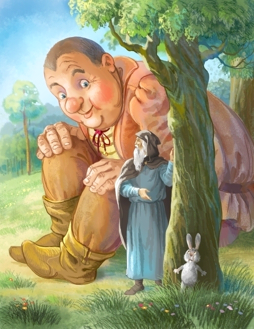 Улыбнулся странник, достал волшебную палочку и превратил кролика назад в великана.