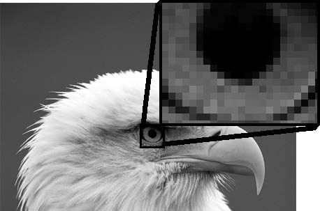 Оно может состоять из прямоугольных фрагментов (пикселов) различной яркости и цвета (рис. 1.1). Подобные изображения называются растровыми.