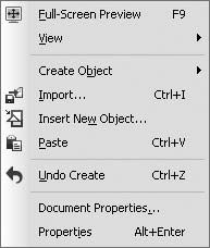 □ Базовое меню (рис. 2.8), вызываемое щелчком в окне документа не на объекте.