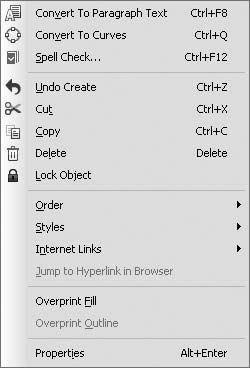 □ Меню редактирования текста (рис. 2.10), которое появляется при щелчке на текстовом объекте.