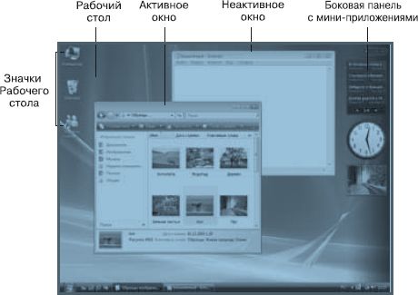 На Рабочем столе Windows Vista находятся следующие основные элементы.