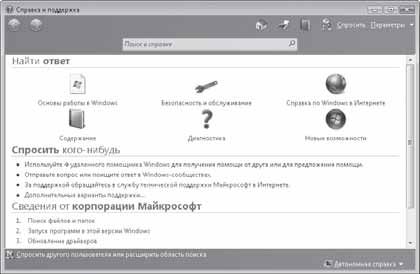 Чтобы открыть окно справочной системы, выполните команду Пуск ► Справка и поддержка или нажмите клавишу F1. В главном окне есть ссылки на основные разделы справки и информационные ресурсы Интернета (рис. 1.4).