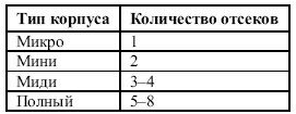 Большинство корпусов классифицируются по количеству больших пятидюймовых внешних отсеков (табл. 1.1).
