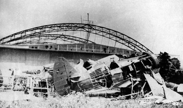 Прилетев в Либаву, я застал невеселую картину. Аэродром рябил воронками, некоторые самолеты еще продолжали тлеть. Над ангарами стлался дым, пламя дожирало и остатки склада горюче-смазочных материалов.