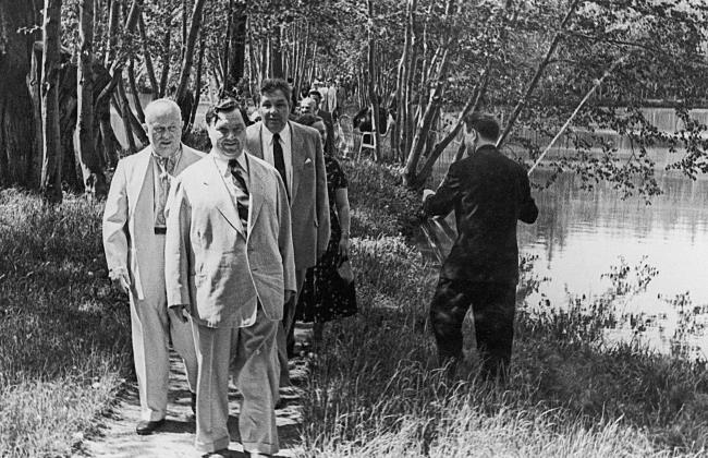 Г.Маленков, Н.Хрущев и Д.Шепилов на даче