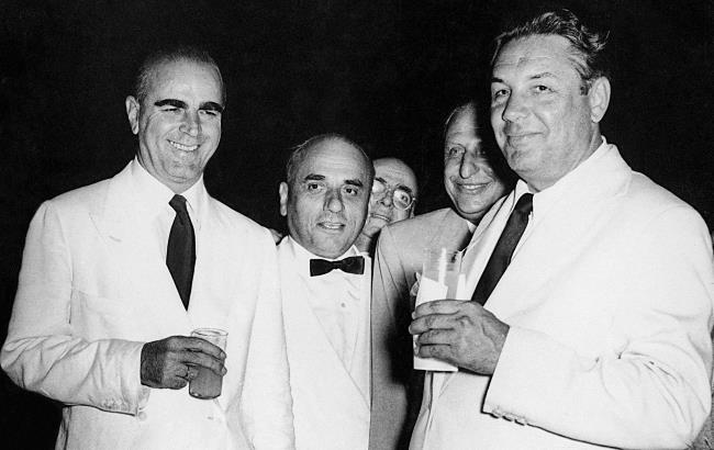 В советской резиденции. В первом ряду слева направо: А.Микоян, Е.Фурцева, Н.Хрущев, Н.Булганин, Н.Шверник. Д.Шепилов – во втором ряду второй слева