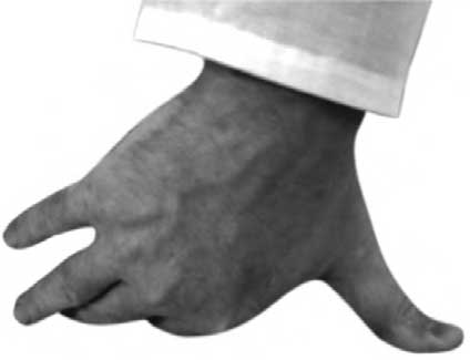 Большой палец – самый «ходовой» исполнитель надавливания, он всегда должен быть жестким. Для надавливания используют подушечку пальца, движение направлено книзу, перпендикулярно к поверхности давления. Посмотрите на фотографии, на них показаны правильное (фото 1, а) и неправильное (фото 1, б и фото 1, в) положение руки во время работы.