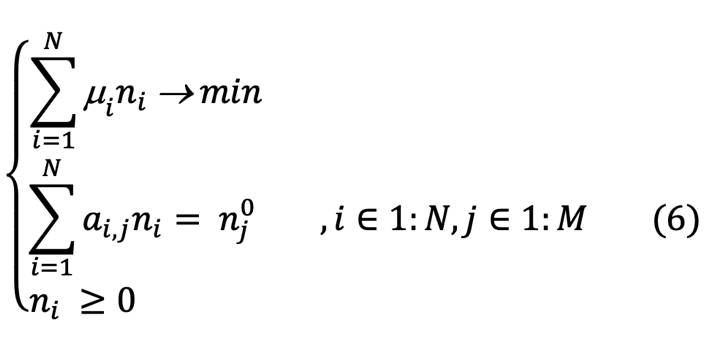 Где nj0 – количество молей элемента j, которое определяется количеством веществ, из которых первоначально состояла система; M – количество химических элементов в системе.
