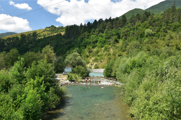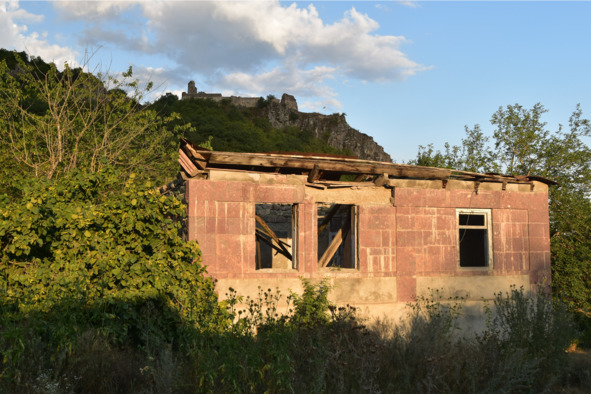 На обратном пути, разместившись под навесом в шаговой доступности от Джеры дзуар, у нас был легкий перекус: хлеб, ветчина и вода. Как говорится, чем Бог послал, со словами благодарности Господу за предоставленную возможность увидеть столько прекрасного. А затем, переведя дух и насытившись, мы направились в Цхинвал через Дменис, возле которого на скалистой пологой возвышенности, довлея над левым берегом Малой Лиахвы, замерли руины Ванатской (Дменисской) крепости, датируемой XVI – XVII веками.