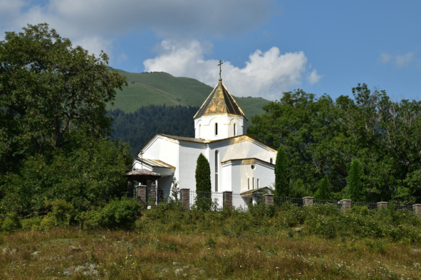 Но вернемся к дню сегодняшнему. Метрах в двухстах южнее церкви Святой Богородицы находится более скромный, но самый древний действующий храм Южной Осетии – церковь Святых Константина и Елены X века, хотя на табличке, прикрепленной к фасаду стены, окружающей подворье, периодом ее основания указан промежуток с IV по VI век. Эту обитель также иногда называют «храм Рождества Пресвятой Богородицы», во всяком случае этим пока еще «грешит» сервис «Яндекс. Карты», что вносит некую путаницу в поиск искомого объекта. 6