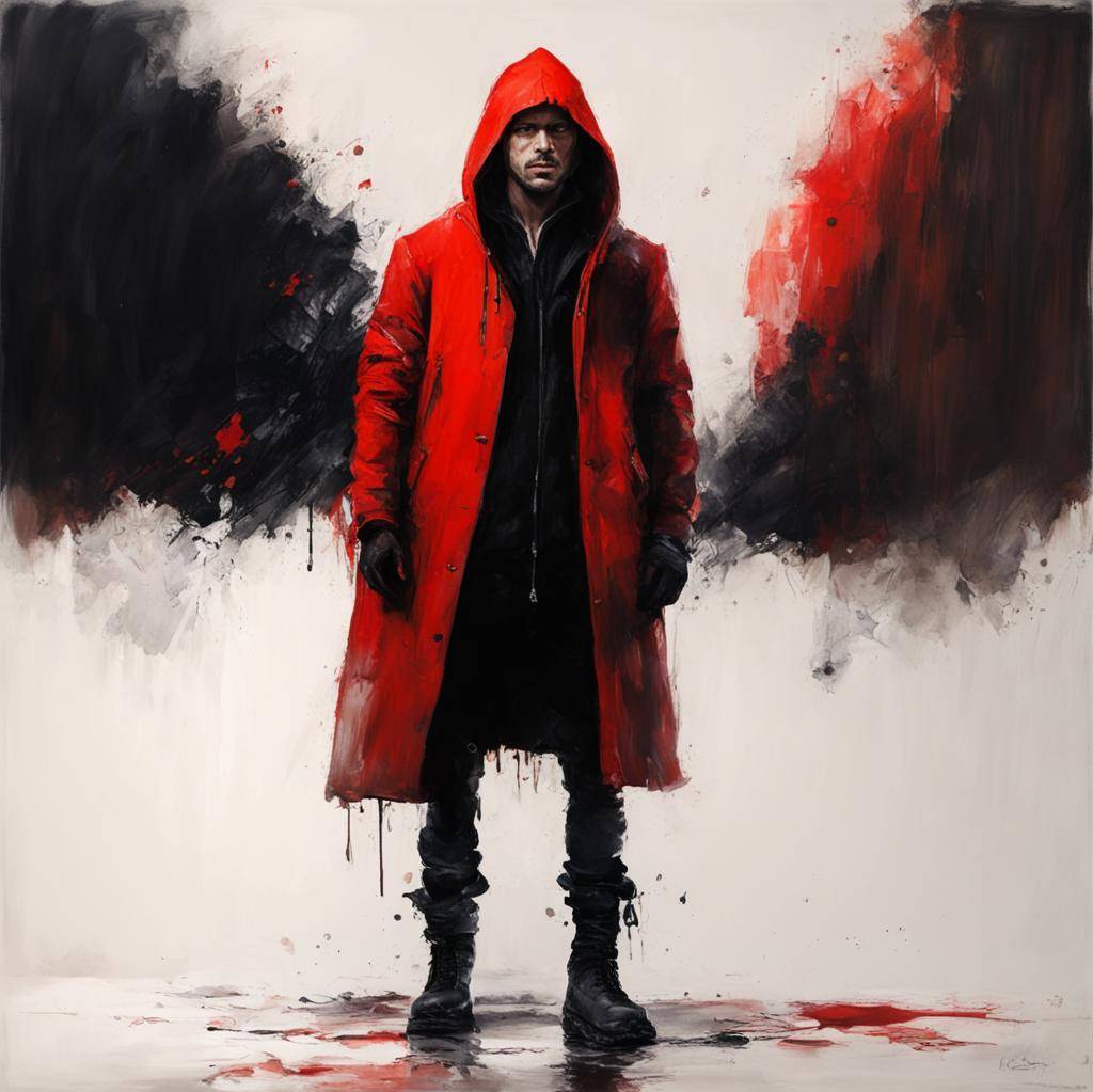 Бросив взгляд на собеседника, увидел высокого, статного мужчину, лет пятидесяти на вид. Его голову с аккуратной причёской и коротко стриженную бороду плотно усеяла седина. Взгляд его суров и сосредоточен, а губы плотно сжаты. Но не это сильнее всего выделялось в его внешнем виде, а то что одет в ярко-красную одежду, красные штаны, заправленные в чёрные сапоги до колен. А также плащ, с капюшоном до колен из плотной ткани поверх чёрной рубахи на завязках вместо пуговиц. Он опирался одной рукой на резной посох, что доходил ему почти до плеча, а на одном из пальцев был золотой перстень с массивным камнем красного цвета.