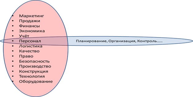 В приведённой таблице желтым цветом выделена область знаний, необходимых руководителю для управления подразделением. Во всей же таблице обозначена вся совокупность знаний для управления предприятием в целом.