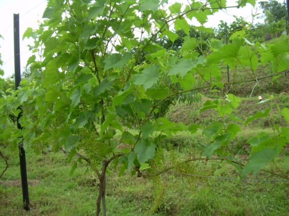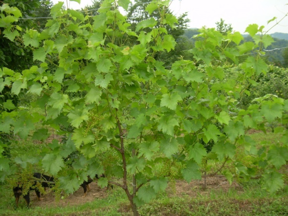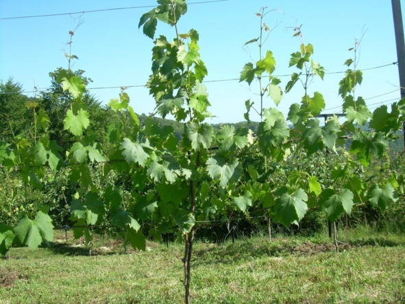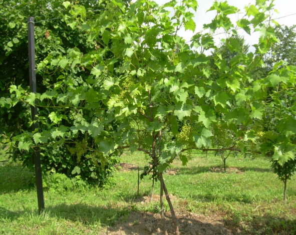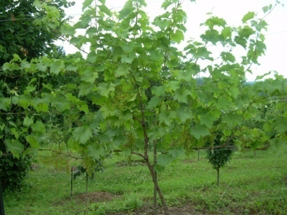 На снимке двухлетний куст винограда из группы новых комплексно – устойчивых сортов.