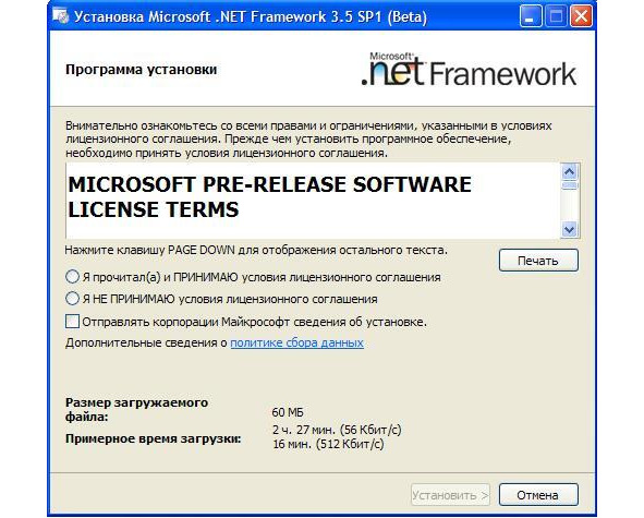 Рис. 0.1. Окно установки Microsoft. NET Framework