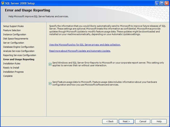 Если в окне настройки отчёта об ошибках включить все опции, то в случае ошибки вся информация об ошибке будет отправлена на сервер разработчика (Microsoft) для анализа. Если вам это необходимо то можете включить все опции, если нет, то не включайте. Нажмите кнопку «Next». Появится окно, отображающее правила установки (Рис. 0.16).