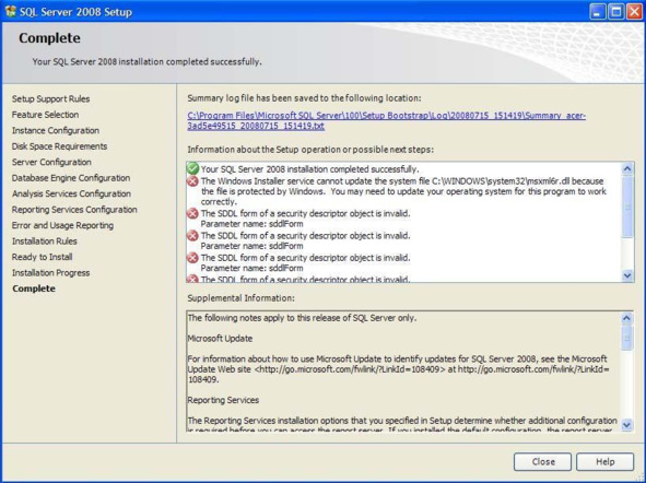 В выше представленном окне нажмите кнопку «Next». Появится окно с полным отчётом по установке сервера (Рис.0.17).