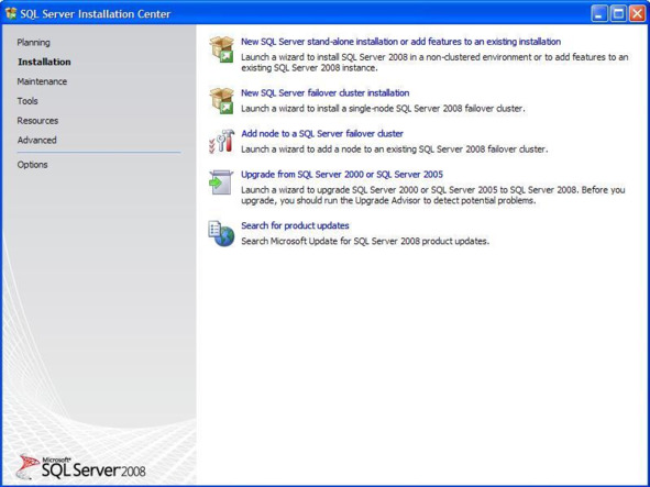 Выберите тип установки «New SQL Server stand-alone installation or add to an existing installation». Начнётся установка файлов обеспечивающих установку сервера (Рис.0.3).