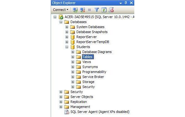 Произойдёт возврат в окно среду разработки «SQL Server Management Studio». На панели обозревателя объектов в папке «Databases» появиться новая БД «Students» (Рис. 0.25).