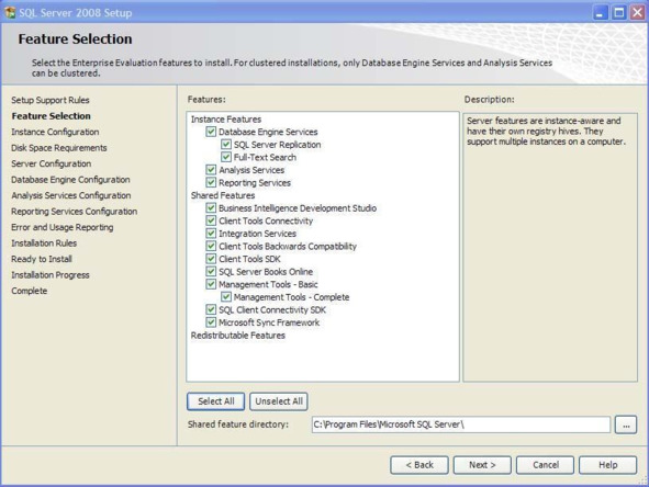 В выше представленном окне нажмите кнопку «Next». Появится окно выбора устанавливаемых компонентов сервера (Рис. 0.7).
