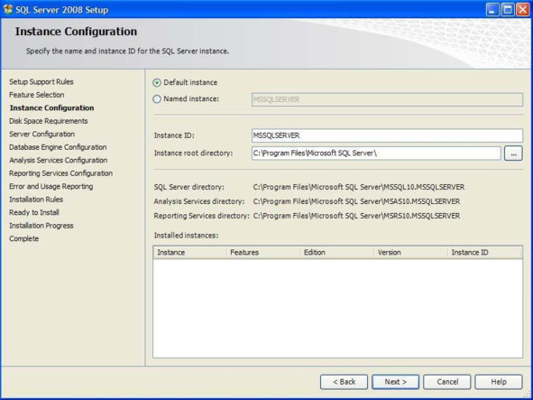 – «Instance ID» – имя устанавливаемого экземпляра сервера;