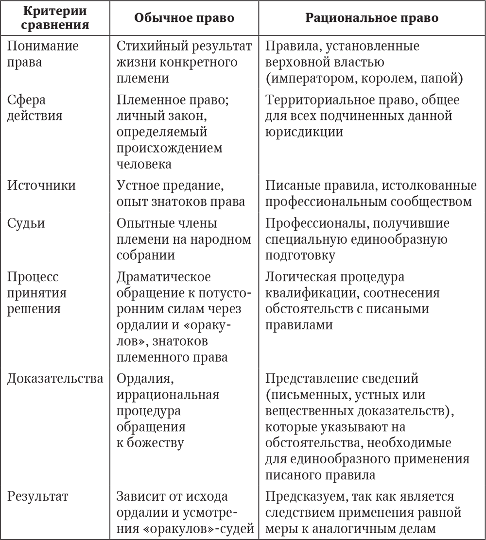 Таблица 1.1. Сопоставление обычного и рационального права
