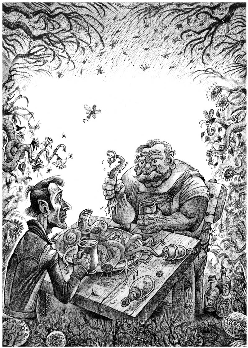 Со щупалец на землю капала вода, а запах у них был вяленый, острый и копчёный. Гость смотрел ошалело.