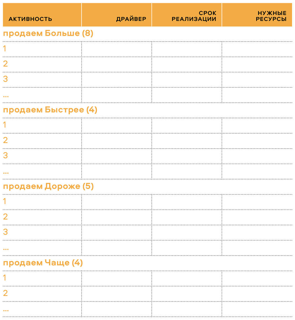 Некоторые инструменты в этой книге позволяют вам продавать сразу в нескольких режимах (например, помогают продавать сразу и Дороже, и Больше).