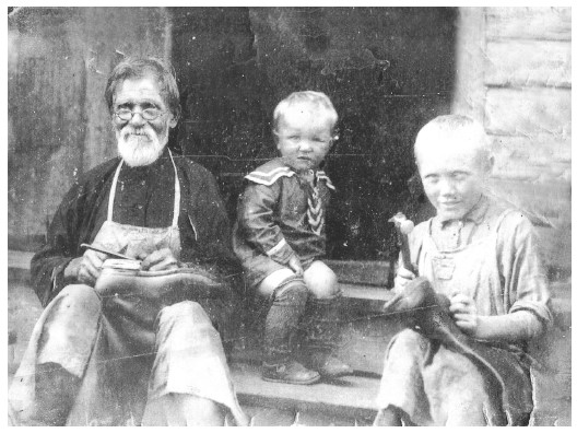 Наш родич, сапожник из села Корневского с внуками.