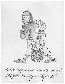 Дед Вася в 1930-е годы – обличает соседей, таскающих у нас дрова. Шарж набросан моей матерью.