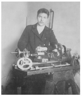 Прадед Никита в своей домашней мастерской. Поселок Ивановское в г. Отрадном под Петроградом.