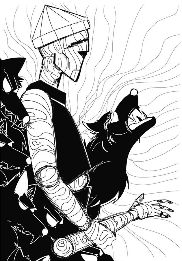 Плотник вдруг занят куклами стал,Хоть от старости очень уж мал,Захотел себе сына, помощника.Заручился поддержкой игольщика, Из древа кусочка сделал ребенка.От бревна во внешности немного,Но древесная гладь заметна прохожим,Словно неровности наподобие кожи. Ростом с простого жеребчика,Нравом как будто родился он с мечиком.Весел и добр, с пытливым умом,Живет в деревушке за лесистым холмом. Но время шло, вокруг все менялось.В воюющий голод все выжить пыталось.Люди старели, болели, терялись.Ради виновных и пищи копались. И кто всех виновней при грусти мог быть?Лица с чьего веку улыбки не смыть?Ему не понять, как ужасны болезниИ почему так печальны церковные песни. Да и в церкви его как демона знали,Мечтали, что в небе Создателю скажут:«Твой идол – осколок чернейшей из магий.Мы в ад для котлов пошлем его палки». Лет двадцать играет с детьмиИ на должности важной с семи.В лес кидает он руки и ноги,Чтоб увидеть, не близко ли волки. Как псы во дворе на кость с мясом,Каждый с стеклянным озлобленным взглядом.Тогда все старались припрятать овец,Закрывали калитки, что смотрят на лес. Кабы не он, еды б не осталосьИ каждую ночь шерсть домов бы касалась.Детей подпускать к нему перестали.Не били его разве что сталью. А он одиноко сидел на пеньке,Не видел отличий в деньке и деньке.Иногда рукой машет детишкам,Но их от него уходить учат в спешке. И последние, кто его радовал, —Те волки, кого лжеобедом обманывал.То пальчик подкинет, то кисть,А они то играют, то жаждут разгрызть. А однажды волчонок вернулся с утраченным,Вернулся к семье без смрада поглаженным.В их жизни вошли люди как в жизни деревьев.И того, что средь люда, а не сотен кореньев. И теперь люди травят обоихЗа то, что живут не как питомцы у многих.И волки живут, пока их не тронут.А тронут – и крови широкий уж омут. Но он не таков, не так воспитали.Создатель по духу создал мягче шали.Пускай одинок и слегка ненавистен,Будет всегда сидяч, бескорыстен. Но все ведь течет как соль внутри моря.Редко счастья залив, чаще – горя.И если залив растет неизменно,То печали потоп все сотрет непременно. Один раз крикнул мальчик какой-то: «Волки!»На пост прибежали послушные ноги.Но вместо тех, кого обходят все кругами,На месте четверо с ножами, с топорами. Летели щепки, пальцы и мольбы.Лицо разбито от уха до губы.И грудь облегчилась на несколько кило.Куски лежали. В деревне око ни одно слезы не пролило. Но вот один с ужасною ухмылкойНанес такой удар орудием крепким,Что щепка в лес с ветрами улетела. Так увлеклись злодеи те весельем,И так устал уж каждый целым телом,Что и не знали о скором их несчастии,Пока не проявилось вмиг клыками на запястье. А наш герой лежал, смотря лишь вверх.То чей-то кусок плоти виден, а то мех.Нет боли, и испуг как будто бы снесло.В глазах только злоба, а также стекло. Ветерок ему голову слегка повернул.В спину бегущему смотрел, не моргнул.Хладно смотрел, как тело в кровиКидает крик боли в верницы равнин. Волки подняться на ноженьки дали,Четверо мальчиков без требухи спали.Кукла ввинтила все части в себя.Замер он, лишь на дырку глядя. В груди ни намека на сердцеИ даже души хоть одну дверцу.Значит, негде быть совести мастера,Как и грехам, со слов пастыря. Кукла гладит всю стаю по очереди.Снова будут в церкви отповеди.И куклу уж точно сделают крайней.Значит, надо из всех самым быть ранним. И он пошел обратно к 