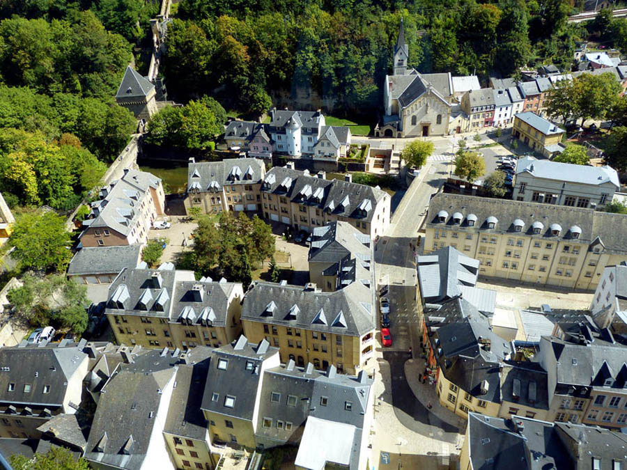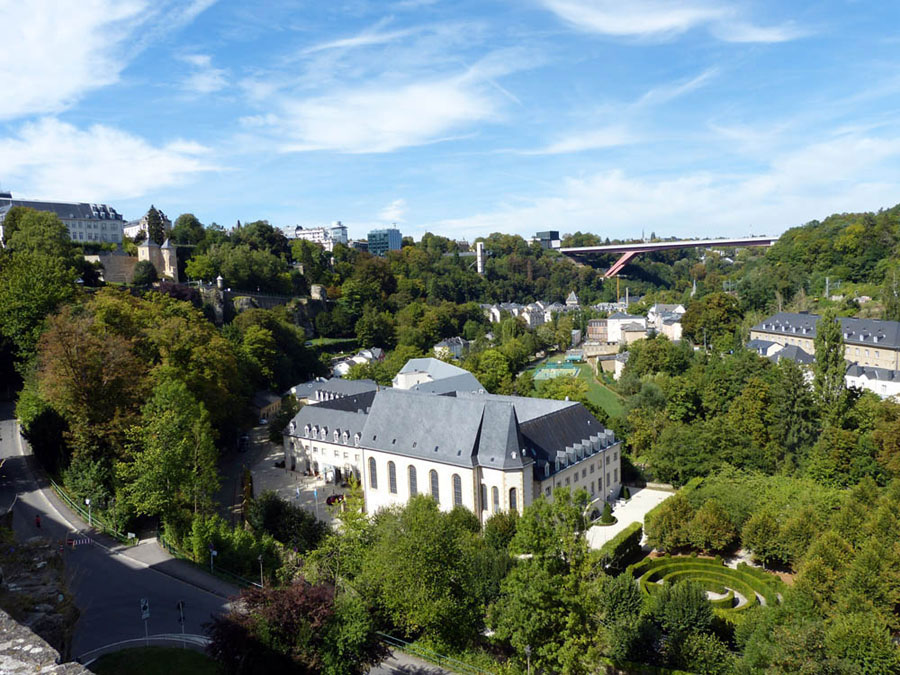 Отсюда шикарный вид и на север, на Pfaffenthal, и на юг, на Grund, тоже расположенный у самой воды.