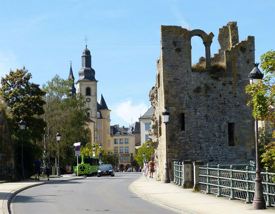 Понятно, что древнеримская дорога проходила по каменному перешейку в долине Альзета и являлась единственной возможностью попасть на мост через него. Понятно и то, что крепость Люксембург действительно была очень хорошо защищена. Ныне же от укреплений на скале Бок остались лишь развалины. Напомню, что это сделали по условиям Лондонского договора 1867 года. Разрушение крепости заняло 16 лет и стоило полтора миллиона золотых франков, т. е. почти полтонны золота.