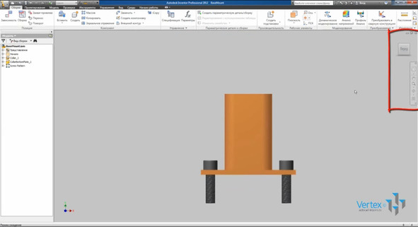 Основными элементами навигации являются «Видовой куб» и «Панель навигации», которые по умолчанию находятся в правом верхнем углу: