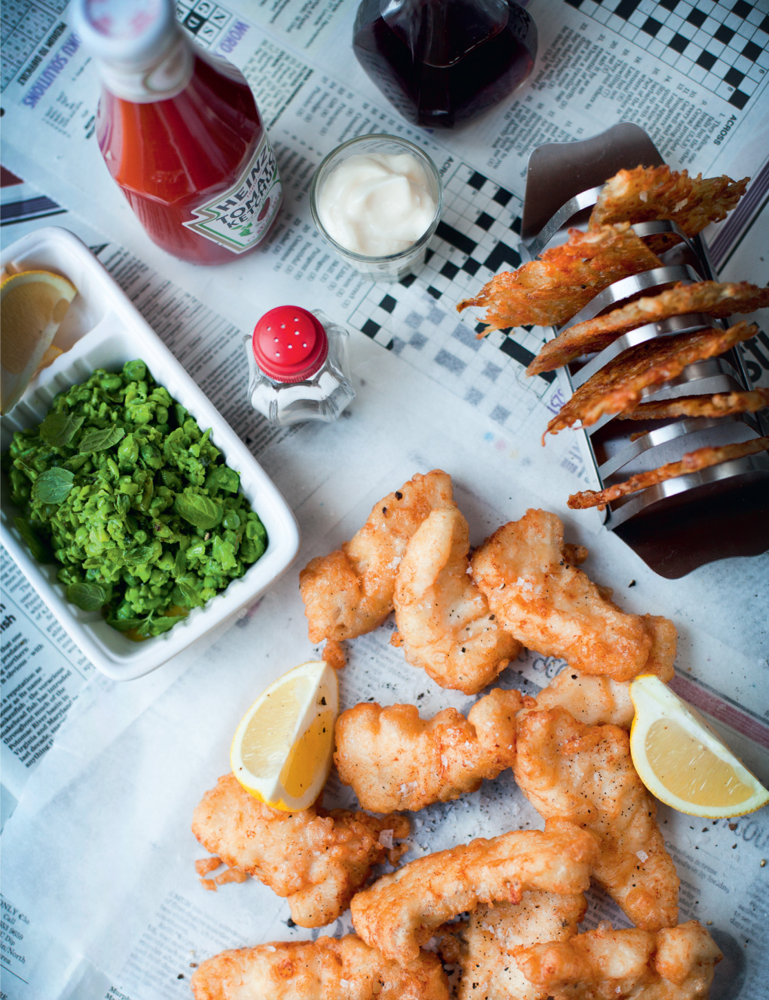 Beer Batter Fish with Pea Mash & Rosti Potato Cakes