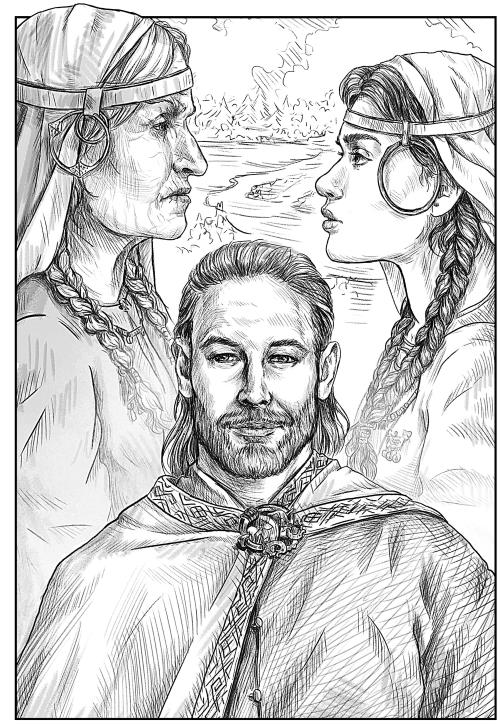 – У него был сын по имени Халльмунд, известный как Халльмунд Старый, – продолжал Свенельд. Он вовсе не считал эти вопросы лишними: семья невесты имела право знать, что родство, которое ей навязывают силой, не уронит княжеской чести. – У Халльмунда было пятеро сыновей: Анлейв, Харальд, Регинфред, Хемминг и Хродрик, а еще дочь по имени Альвейг. Мужем Альвейг был человек по имени Хавтор Скала. У них родилось трое сыновей: Регинфред, Хродрик и Халлькель. Регинфред был дедом моего отца, Халльмунда. Мой отец женился в Ладоге, это на Восточном пути, на другом берегу Восточного моря[1]. Моя мать происходит из Витонежичей, это старший тамошний род, в большой славе. Мы живем в Хольмгарде, главном городе Гардов[2], откуда начинается путь в сарацинские страны через земли славян и всяких прочих. Мой отец – хёвдинг у Олава конунга, и весь наш род у него в чести.