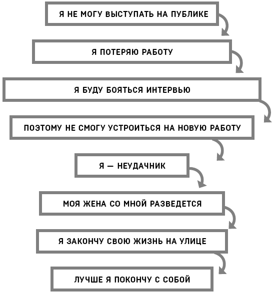 Несмотря на то что Джимми подавил это воспоминание, Тревожные драконы преследовали его на протяжении всей средней школы, старших классов и колледжа, а также во взрослой жизни. Он прилагал все усилия, чтобы не будить их, уклоняясь от любых презентаций, пока примерно шесть лет назад руководитель не попросил его выступить на работе с краткой речью о своей роли в компании. Он любил свою работу, но целыми днями размышлял о том, что не сможет облечь свои мысли в слова. Даже после проведения презентации НАМы множились в его мозгу, громоздясь друг на друга и нападая на него, что приводило ко многим другим трагичным мыслям, таким как: