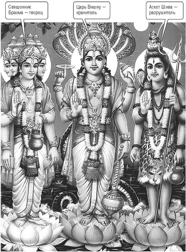 Концепция Бога в индуизме довольно сложна. И ее невозможно объяснить, не обращаясь к понятию Богини. Большинство людей не учитывают этого, поскольку ориентируются на библейские представления о Боге, и в результате ничего не понимают. Богиня – это природа, а Бог – то, как природа воспринимается человеческим воображением. Когда это восприятие неполно и неточно, Богу не поклоняются, как в случае Брахмы. Когда восприятие является полным и точным, Богу поклоняются, как в случае Шивы и Вишну. Собственно говоря, когда восприятие точно и полно, разделение между Богом и Богиней исчезает. Есть лишь одно. Это одно – брахман. Брахма – это Бог, стремящийся к совершенству, которое есть брахман. Отсюда ведическая максима Ахам Брахмасми – что означает одновременно «Я есмь Брахма» («Я конечен») и «Я есмь брахман» («Я бесконечен»). Каждый человек представляет собой процесс движения от конечного состояния к бесконечному – от Брахмы к брахману – по пути, который прокладывается воображением.