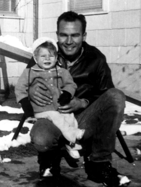 Отец и я (в возрасте трех лет) перед нашим домом на Навахо-Стейшн в резервации индейцев навахо, 1955.