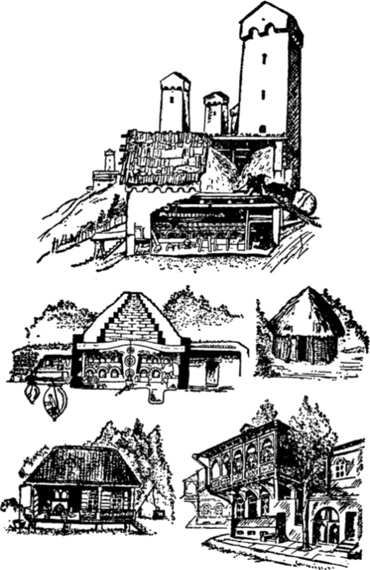 Рис. 1. Основные типы традиционных грузинских жилищ: