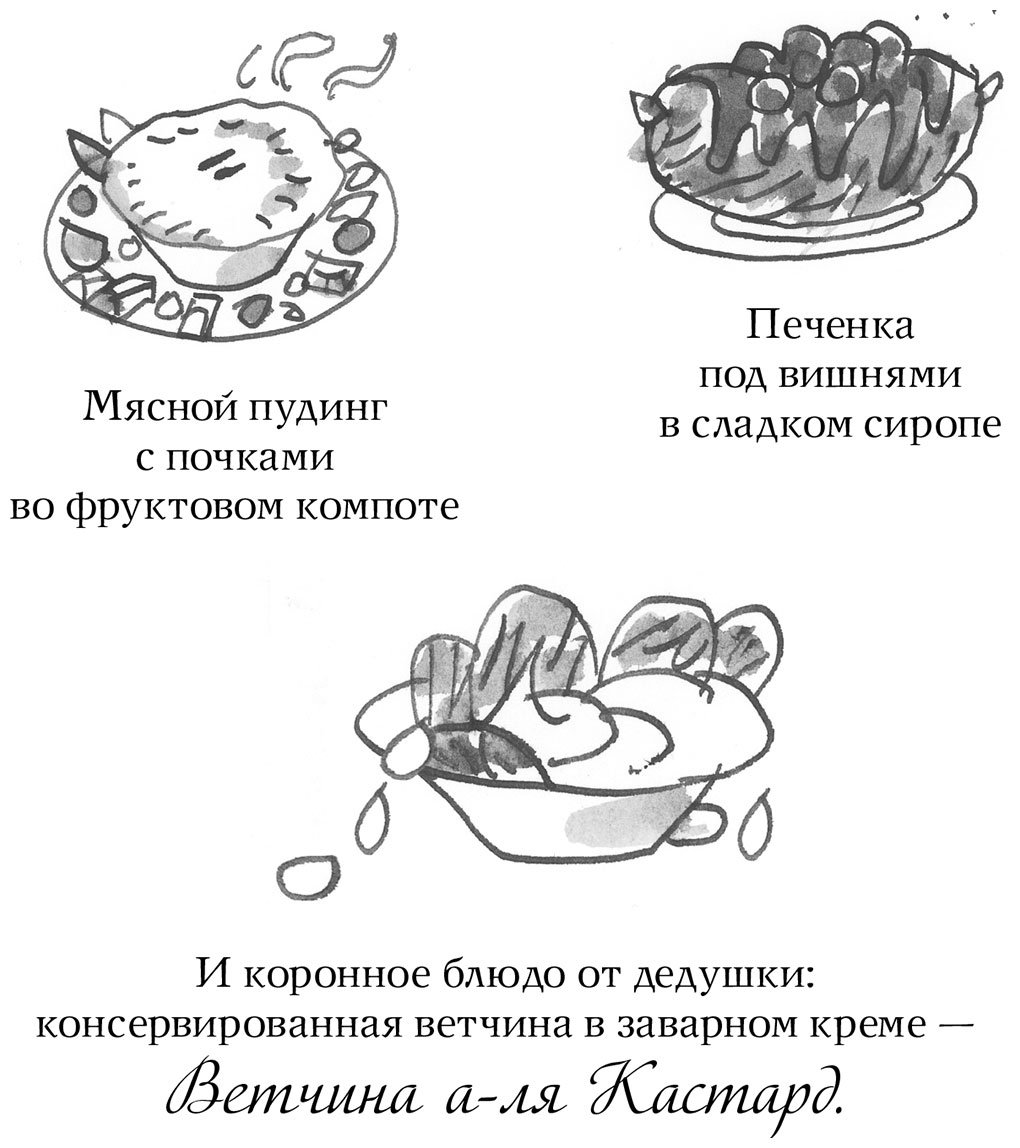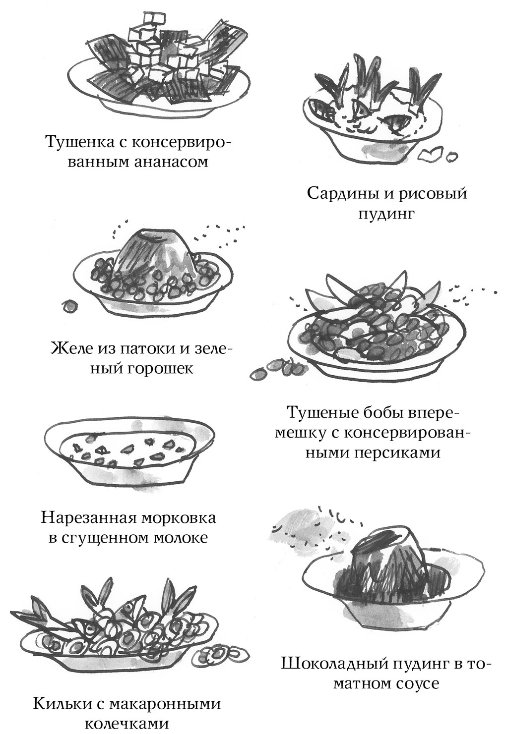 Обидно только, что еда у дедушки в доме всегда была просто ужас. Он называл ее «рацион» – как во время войны. Ел дедушка одни только консервы. На ужин доставал наобум из кладовки пару банок и вываливал на сковородку их содержимое.