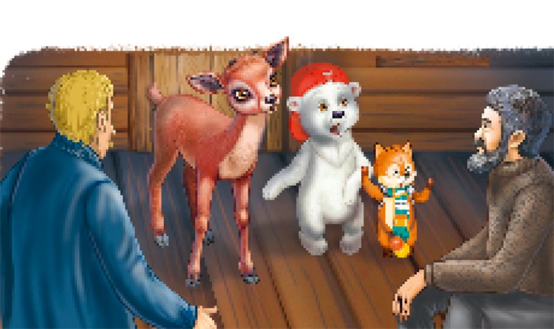 Белый медвежонок Урсо и северный оленёнок Чука несли своего друга – игрушечного лиса Стёпу – в чукотское стойбище, к шаману Танату.